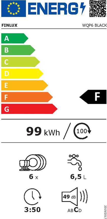 Finlux WQP6 Πλυντήριο Πιάτων Πάγκου 55cm για 6 Σερβίτσια Μαύρο