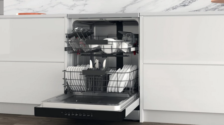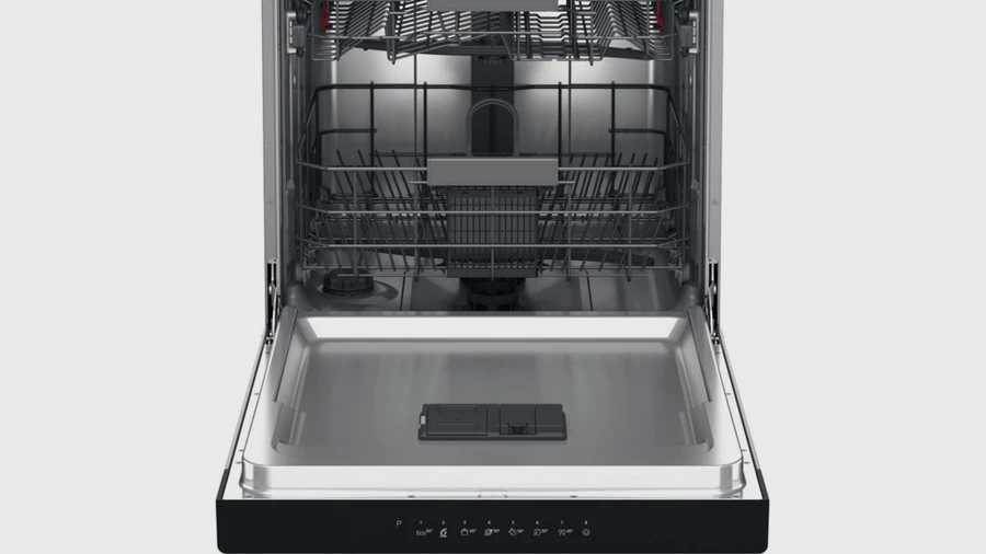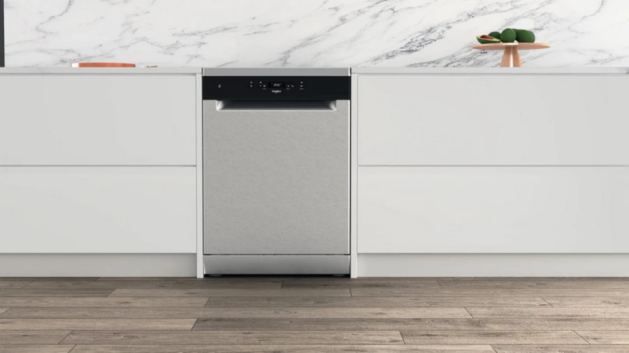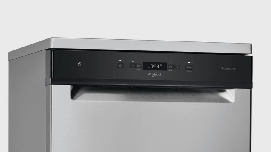 Πλυντήριο πιάτων της Whirpool με τεχνολογία έκτης αίσθησης, λειτουργία natural dry, multizone, πρόγραμμα καθυστέρησης έναρξης και χαμηλό επίπεδο θορύβου, για να πλένει και να στεγνώνει αποτελεσματικά τα πιάτα.
