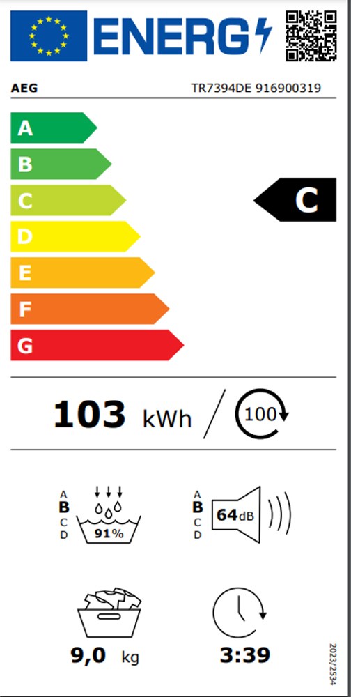AEG TR7394DE Στεγνωτήριο Ρούχων με Αντλία Θερμότητας